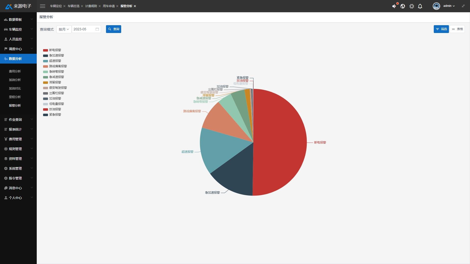 一张图集成了派工情况,车辆分布情况,企业资产情况